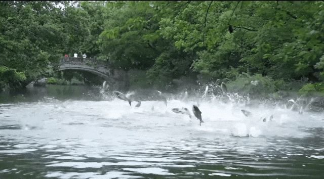 降雨致水位上涨、水流湍急,激发鱼类逆流;